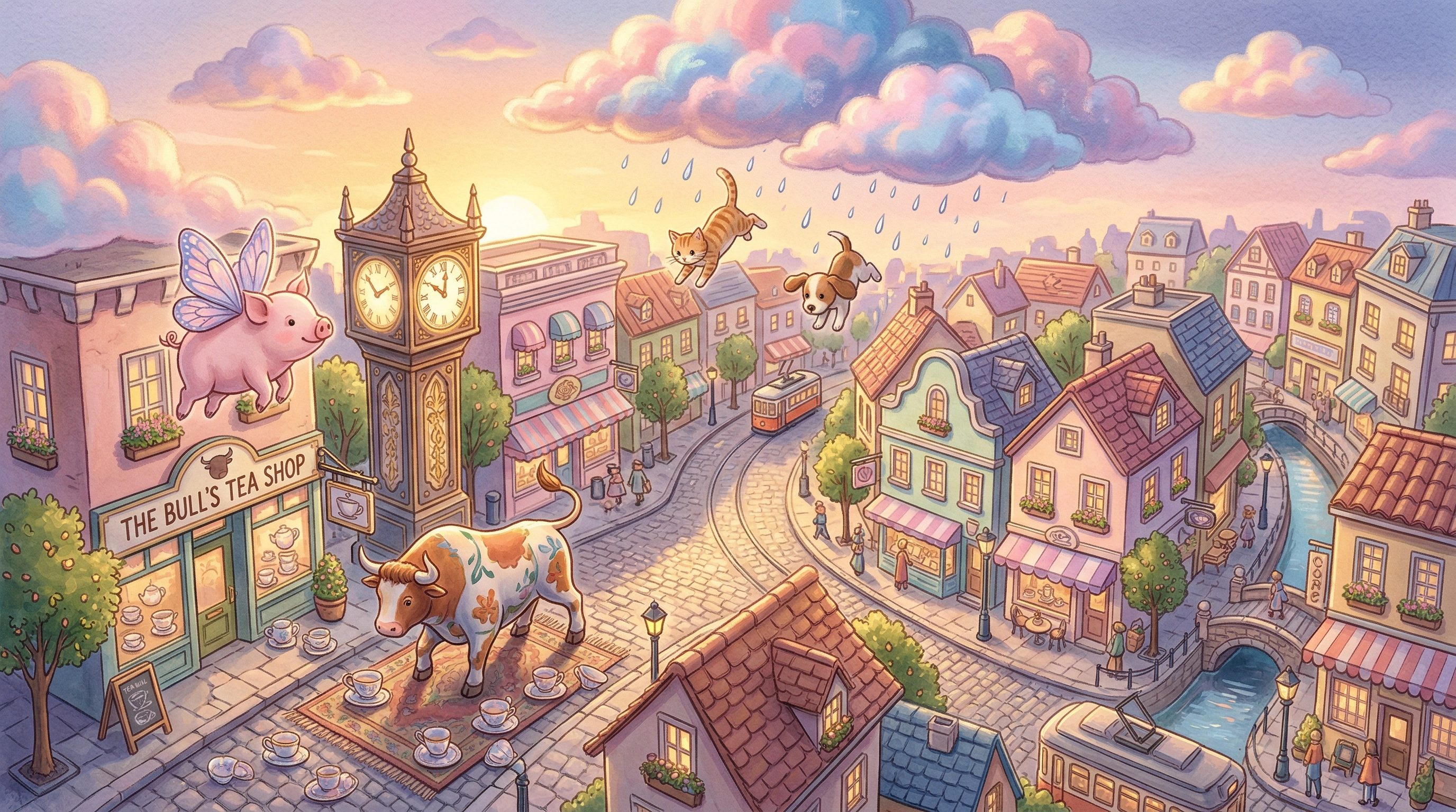 Literal image: Actual cats and dogs plummeting from storm clouds. Actual meaning: It's raining very heavily. Origin: Multiple theories compete here. One points to Norse mythology, where cats symbolized heavy rain and dogs were associated with Odin, the storm god. Another suggests that in 17th-century England, heavy rains would wash dead animals through the streets, making it look like they'd fallen from the sky. The poet Henry Vaughan wrote about "dogs and cats rained in shower" in the 1650s. In conversation: "Take an umbrella — it's raining cats and dogs out there." In other languages: Spanish: llover a cántaros (raining pitchers). French: il pleut des cordes (it's raining ropes). Arabic: الدنيا بتمطر جرادل ad-dunya bitmaṭṭar garādil (the world is raining buckets).