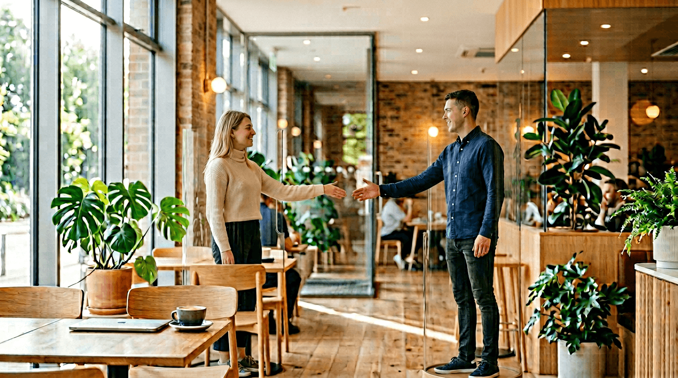 Your words are only half the introduction. Research suggests people form first impressions in roughly seven seconds — long before you finish your second sentence. Here's what to focus on when you introduce yourself in English face-to-face.